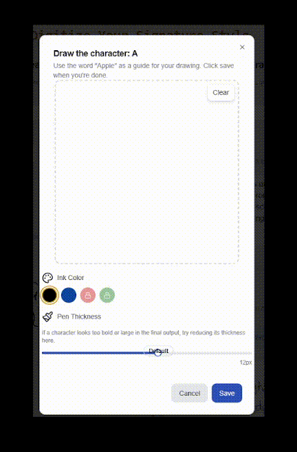 Create realistic handwriting output from your own letter drawings.